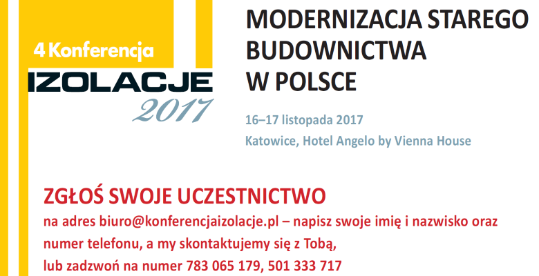 Zapraszamy Państwa na czwartą Konferencję IZOLACJE 2017 – Modernizacja starego budownictwa w Polsce, która odbędzie się 16-17 listopada 2017r. w